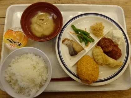 夕食の様子です。夜になると食堂の雰囲気も変わります。そんな中、昼食に引き続いてしっかりと食べる6年生。みんな元気です。