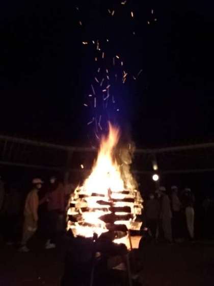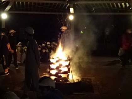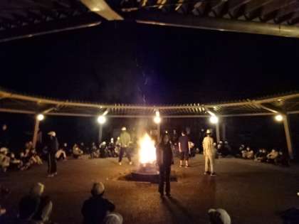 待ちに待ったキャンプファイヤーです。花背山の家の火の神様からいただいた火のもとで、レクリエーション係が中心になって盛り上がります。仲間と過ごす時間を、思い切り楽しんでいます。