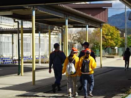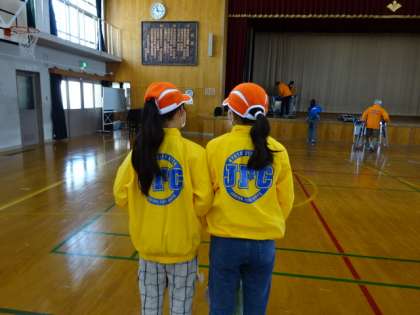 研修会には、地域の方たちに交じって、2人の6年生も参加しました。北ジュニア消防団に所属し、消防署での訓練に参加したり講習を受けたりと、定期的に北消防署の方と一緒に活動しているそうです。研修会の後、上賀茂地域の防災対策について見て回るために、北消防署の方と一緒に校区へ出かけていきました。