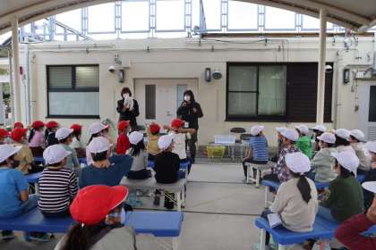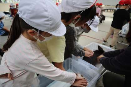 動物園では、クイズラリーの他にも、クラスごとに「なかよし教室」に参加しました。飼育員さんに、ウサギとテンジクネズミの特徴や触り方を教えてもらった後、実際に触らせてもらいました。「かわいい。」「ウサギとテンジクネズミでは触り心地が全然違うよ。」と大興奮の様子でした。