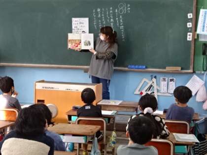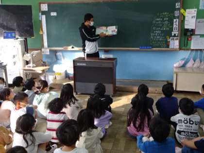 2年生の教室には、1年生の担任の先生が来てくれました。それぞれの先生がみんなに聞かせたいというお話を読み聞かせしています。