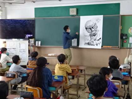 4年生の教室には、3年生の担任の先生が来てくれました。マンガの一場面のセリフを取り上げ、紹介する先生もいました。