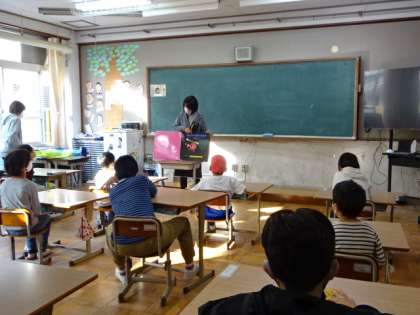 1組の教室には、通級教室の先生が来てくれました。来週からのもみじ読書週間、たくさんの本に出会えるといいなと思います。