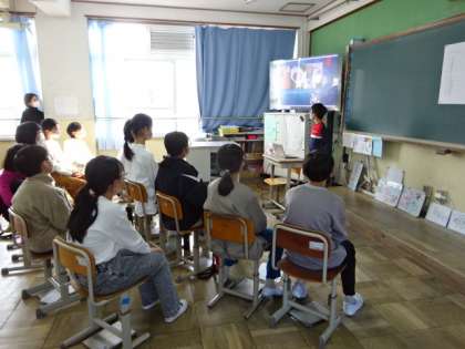 6年生は、一人一人がツーリストになって、京都の魅力ある地を紹介していきます。タブレット端末を使ってまとめ、聞いている人にプレゼンテーションしていきます。聞いている人たちに少しでも魅力が伝わるように、工夫を凝らして発表していました。