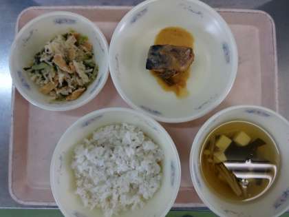 今日の献立は、「麦ごはん・さばのみそ煮・切干大根の煮つけ・すまし汁」でした。和献立の日でした。今日も美味しくいただきました。