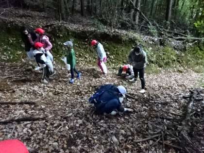 1組のみんなで秋みつけに、大田の小径を散策しました。少し険しいところもありますが、足元に気をつけながら山道を歩きました。途中、落ち葉やドングリ、松ぼっくりなど拾いながら歩きました。少し疲れたけど、いい散策になりました。