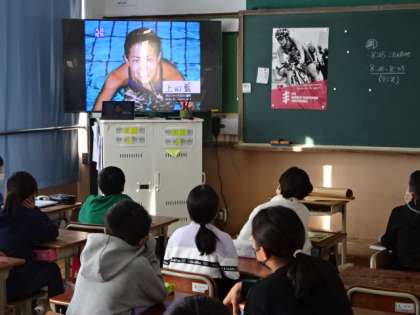 明日の休日参観、3・4校時に、本校卒業生の上田藍選手に講演していただきます。各教室で、みんなの先輩である上田藍選手について知るために、紹介ビデオを見てきました。明日は、どんなお話を聞くことができるのでしょう。楽しみです。