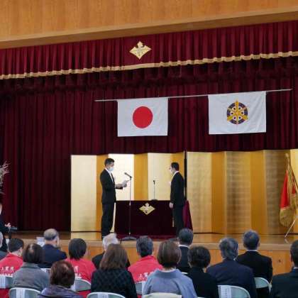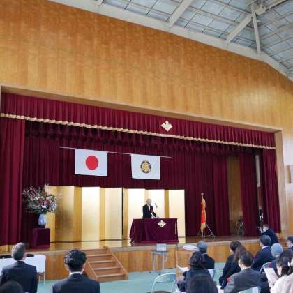 休日参観と兼ねて、創立150周年記念式典を開催しました。一部では、日頃から学校にご支援、ご協力いただいている地域の皆様方をお招きして、開催しました。