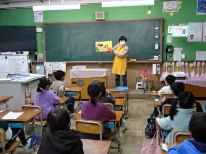 今日は1組と1・2年生の教室に来て、読み聞かせをしていただきました。