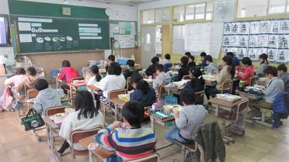 今日は4年3組のみんなと一緒にいただきました。どの献立も本当に食べやすく、ほとんどの子が減らしもなくペロリと食べていました。