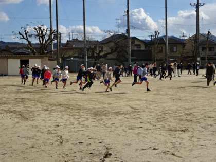 2月12日(日)西京極総合運動公園陸上競技場で行われる大文字駅伝の代替大会「京キッズRUN」に向けて、校内の記録会がありました。大会の出場を目指し、自己記録更新を目標に走りました。同級生の応援を受けながら、みんな頑張っていました。