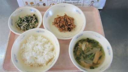 ごはん とりめしの具 切干大根のごま煮 京野菜のみそ汁 です。