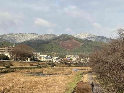 今日も冷え込みの厳しい一日となりました。山頂付近にはうっすらと白い雪が見えます。冬休み中、雪遊びができるぐらいに雪が降る日もあるかもしれません。健康・安全に十分に気をつけて、皆様、お過ごしください。