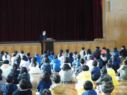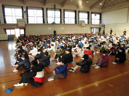 いよいよ3学期がスタートしました。3学期始業式は1組、3・4年生が体育館で、他の学年は教室で参加しました。
