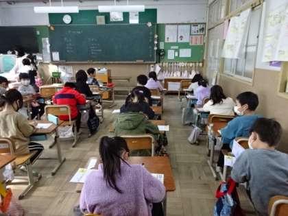 1年生は、計算ドリルや漢字ドリルを使っての学習です。もうすぐ2年生。お兄さん、お姉さんになることを意識して、張り切って取り組もうとする姿が頼もしいです。