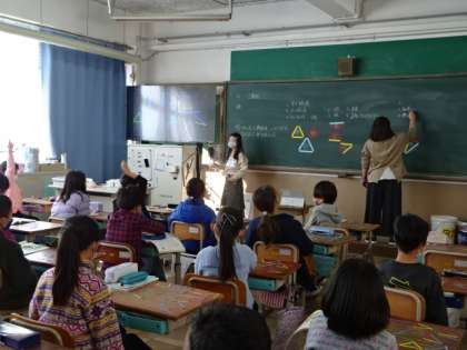 算数の学習の様子です。今日は辺の長さに着目して、三角形の種類分けをしました。「正三角形」や「二等辺三角形」がどんな三角形か、確認することができました。