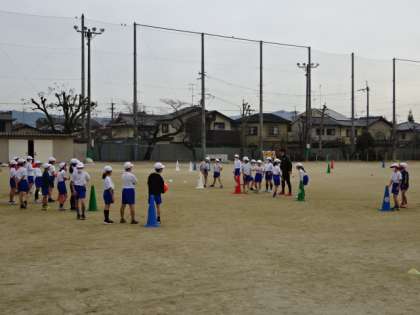 京都パープルサンガの方々に来ていただき、サッカーというスポーツを通して、友だちづくりのことや相手とのコミュニケーションの大切さ等、楽しく教えていただきました。次週以降も各学年で実施していく予定です。