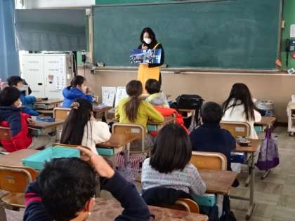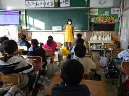 今日は、3年生と4年生の教室で読み聞かせをしていただきました。