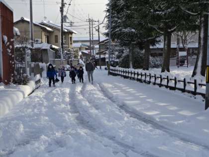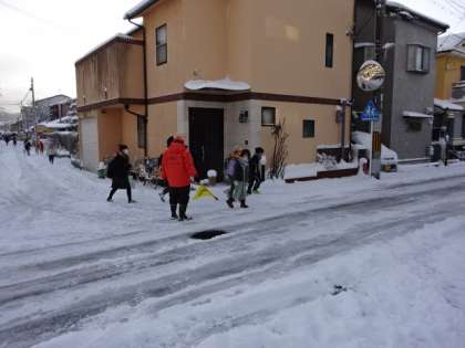 雪がたくさん降り積もった中での登校でしたが、スクールガード隊や警察署の方々には、いつも通り、子どもたちの登校の様子を見守っていただきました。また、保護者の方々も一緒に登校していただき、子どもたちの安全を見守っていただきました。ありがとうございます。