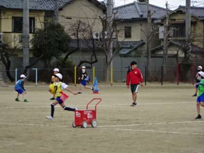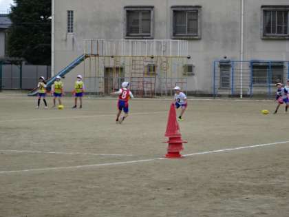 タグラグビーの学習です。ゲームを通して、ルールや動き方を身に付けています。