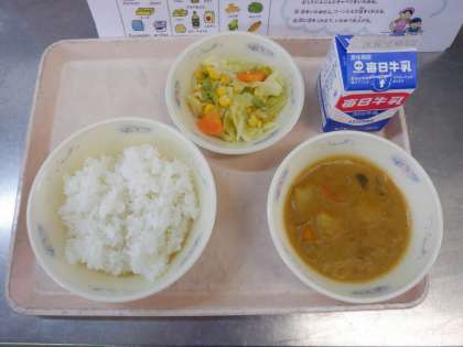 ごはん 牛乳 ポークカレー カラフルホットマリネ です。