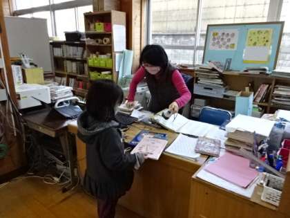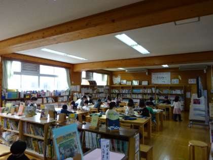 1年生が図書館にやって来て、読書活動です。読書ノートへの記録も、たくさん書かれています。読書100冊達成を目指しています。