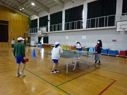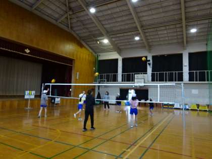 サッカー、卓球、バレーボールの3つのクラブが活動しました。それぞれの種目を、先生も一緒になって楽しんでいます。