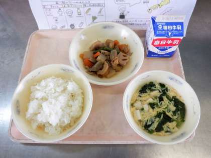 ごはん 牛乳 筑前煮 かきたま汁 です。