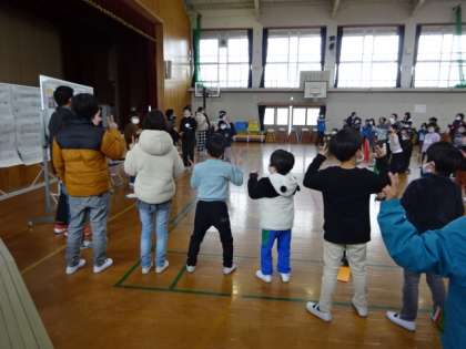 北上支部の育成学級のみんなが本校に集まり、合同お別れ会がありました。本校の1組の子たちが司会進行をしていきます。6年生との最後の会を、みんなが楽しめるようにと頑張りました。思い出に残るいい会になりました。