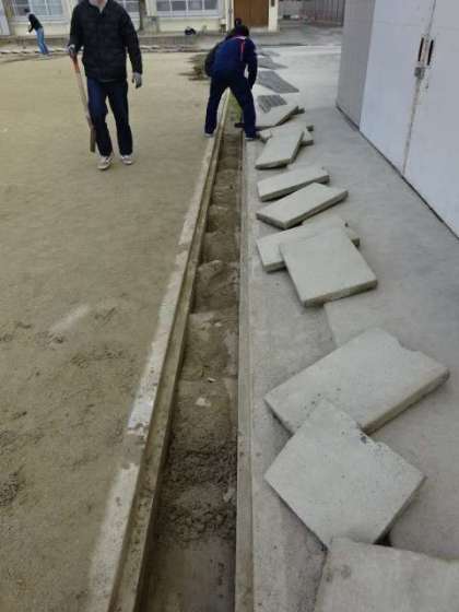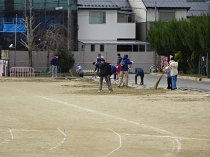 グラウンドの清掃をしていただきました。普段グラウンドを使用している各種団体の方々が集まり、側溝にたまった土砂を掻き出す等の清掃をしていただきました。たくさんの方々の力であっという間にきれいになりました。子どもたちも地域の大人の方々に混じって一緒に清掃活動を頑張りました。ありがとうございました。