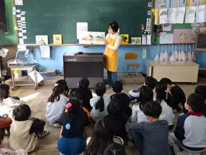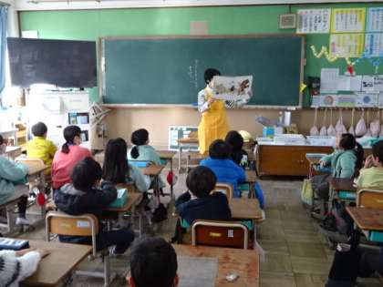2年生の教室では、読み聞かせをしていただく方の前に座って、読み聞かせを楽しみました。いつもありがとうございます。