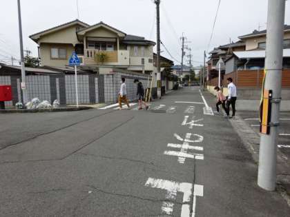6年生はもうすぐ中学生。中学校の先生にお届け物を届けに行きました。道中は、通学路となるところ。交差点での安全確認や、横断歩道を渡ること等、4月から中学校まで安全に登校できるように、確認しながら歩きました。