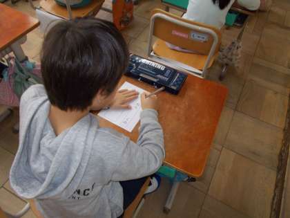 正しい鉛筆の持ち方を意識しながら1年生は、5時間目の授業でも一生懸命に取り組んでいました。