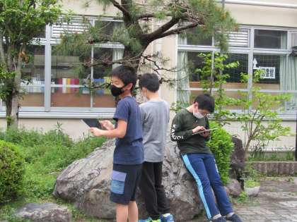 校内で、描きたい風景を探しに行きました。