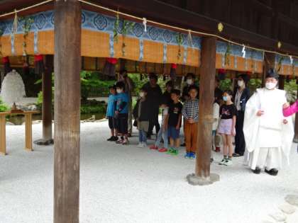 ゴールデンウイークの狭間の今日、上賀茂神社でフタバアオイ奉納式「葵里帰り」があり、本校の児童も参加しました。