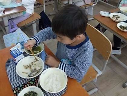 魚の骨と悪戦苦闘しながら食べている子どももいましたが、上手に骨をとって「骨がたくさんあったけれど、おいしかった!」という感想の声も聞くことができました。うれしいことです。お家でも、骨のある魚も上手に骨をとって、しっかりと食べてほしいと思います。