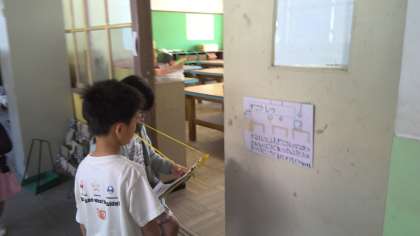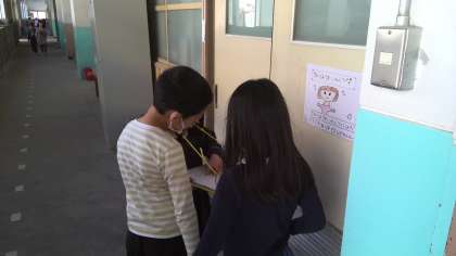 2年生が1年生を学校探検に案内です。これまで、1年生のために一生懸命に準備をしてきた2年生。優しく1年生を案内する姿はとても微笑ましく、そして、頼もしいです。