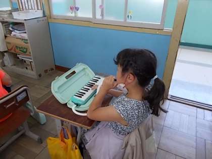音楽の時間に「かっこう」の学習で、鍵盤ハーモニカでの演奏を練習しています。指使いに気を付けながら練習に取り組んでいました。担任の先生のオルガン伴奏とコラボがあり、とても楽しそうなメロディーが流れていました。