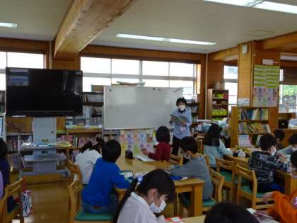 5年生の、図書館オリエンテーションの様子です。学校司書の先生から、図書の分類についてや読書ノートの活用の仕方について教えてもらいました。読書の冊数とともに、どれだけたくさんのページ数を読むことができるか。今年もたくさんの本に出合い、読書を進めてほしいです。