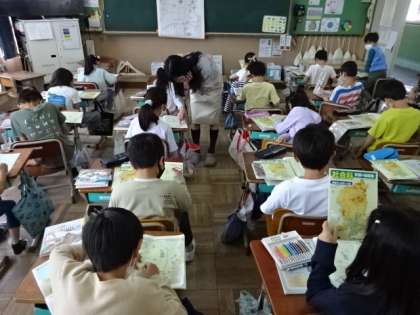 京都市の学習をしています。広い京都市の中で、自分たちが暮らす上賀茂はどこらあたりに位置しているのか、だいぶつかめてきたようです。