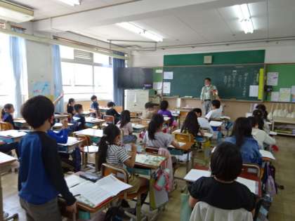 社会の学習の時間の様子です。考えたことや気付きをみんなで出し合いながら、学習を進めています。