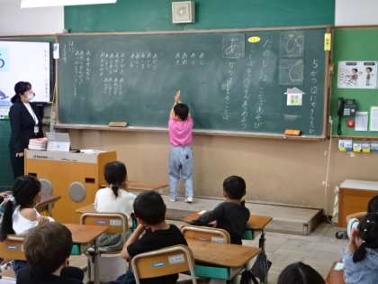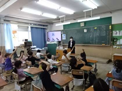 国語の学習の様子です。入学して早ひと月が過ぎました。手を挙げて発表することや、友だちの発表をしっかり聞くこと等、学習のルールもその都度確認しながら学習をしています。