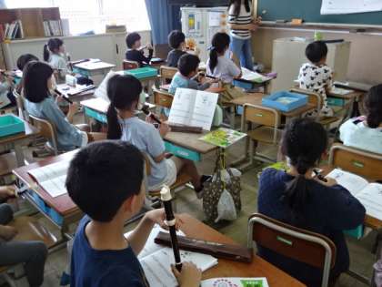 3年生の音楽の学習では、リコーダーが登場します。鍵盤ハーモニカとはまた違う難しさがありますが、きれいな音色で演奏できるように練習しています。