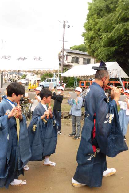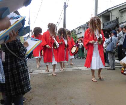 また、別の町内では、やすらい祭が行われました。昨年のユネスコ無形文化遺産に記載されたやすらい祭。「やすらい踊り」や「みこし巡行」に本校の子どもたちも参加しました。こちらも地域の方々に見守られる中で、思う存分に祭りを堪能することができました。