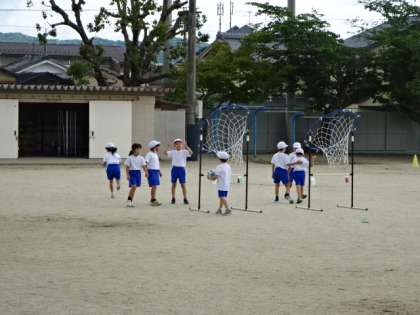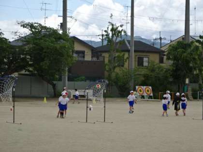 パスゲームの学習です。1年生でも学習しましたが、その時のことを思い出しながら自分たちで準備をして学習を進めていきます。これからゲームをしていくのが楽しみです。