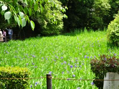 校区にある大田神社のカキツバタも有名です。やすらい祭の時に大田神社にも立ち寄りましたが、カキツバタも見頃はそろそろ終わりに近づいてきていました。でも、たくさんの観光客でにぎわっていました。