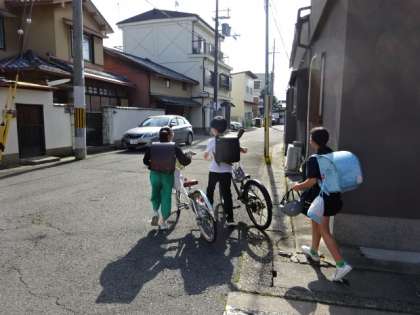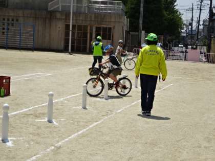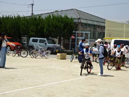 毎年、4年生で実施している自転車安全教室には、たくさんの方々に関わっていただき、学習を支えてくださっています。また、お家の自転車やヘルメットなども持参いただいています。ありがとうございます。