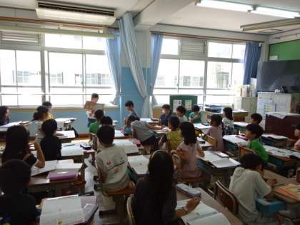 道徳の時間の様子です。自分の考えを積極的に発言しようという姿があります。そして、発表している友だちの方に体を向けて、一生懸命に聞いています。授業を通して、「話す・聞く」ことの約束事もみんなで確認しています。