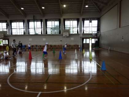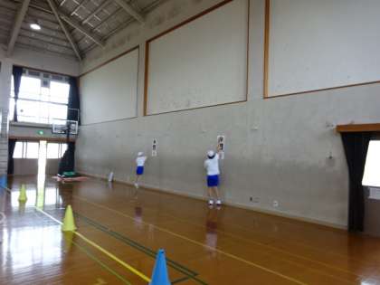今日は休日参観でした。昨日までの雨も上がり、良い天気の下、たくさんの方に足を運んでいただきました。1組は体育館での授業と、教室での授業を、それぞれ参観していただきました。