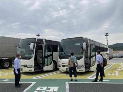 トイレ休憩です。レク係が上手に車内を盛り上げてくれたおかげで、みんな元気です。